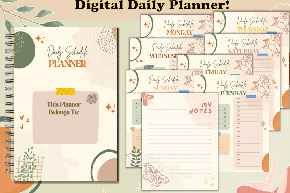1 zip file containing 10 different PNG's : 1 Cover Page, 7 different days of week planner pages, 2 pages of Notes (Feel free to print any page as many times as needed!)