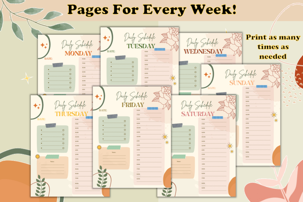 • 7 different days of week planner pages